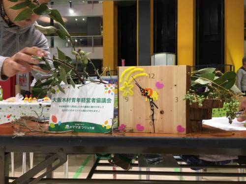 H28年11月3日(木)南港ATCにて開催されました森のママ祭りへ大青協木育委員会事業として参加しました。前回の林業体験の時に切った檜の木材を使い、木の時計を参加して頂いた親子に作ってもらいました。予想を上回る大盛況で親子で時計を一生懸命作...